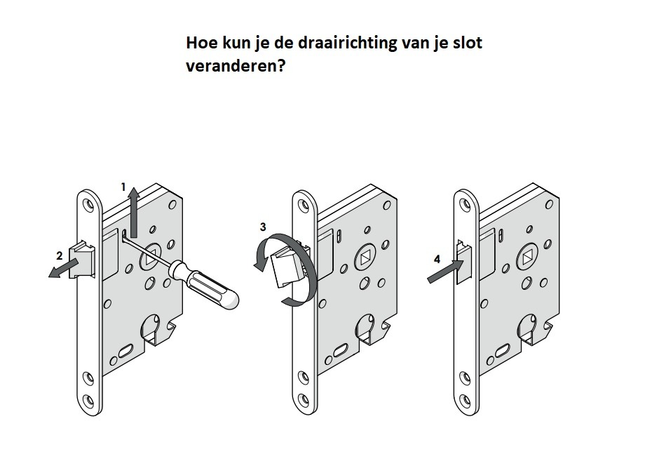 De draairichting van dit slot veranderen is zeer eenvoudig: