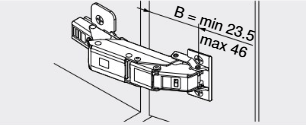De bevestigingspositie (B) van dit scharnier is afhankelijk van hoe ver je deur over de kast valt (frontopdek FA) (zie afbeelding). In de tabel hieronder zie je per frontopdek welke bevestigingspositie & montageplaatdikte bij jouw situatie past.